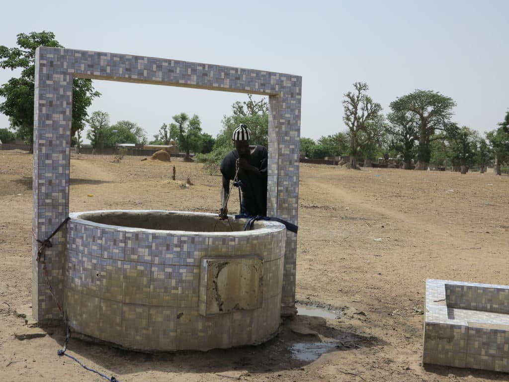 Assis sur sa chaise, un vieil homme plonge un gobelet dans un seau rempli d’eau, puis le porte à sa bouche. Nous sommes à Fao, dans la commune de Ndiaganiao, dans l’ouest du Sénégal. A quelque deux heures de route de Dakar, la capitale. En ce début d’après-midi estival, la chaleur est écrasante. A l’entrée du village, les notables se sont réunis sous un arbre pour recevoir Le Courrier. Derrière nous, passe une femme, bidon d’eau sur la tête. En provenance du puits, à quelques centaines de mètres des habitations. Dans le village, il n’y a ni eau courante ni électricité. La population, disséminée dans des concessions familiales, s’approvisionne dans des puits.
